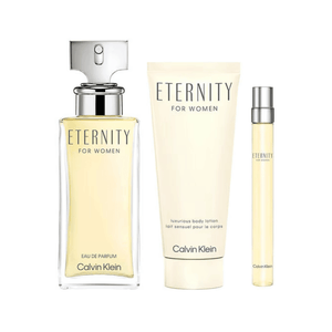- Body Lotion Eternity 100ml: Um creme para o corpo enriquecido com a mesma fragrância de Eternity, que hidrata a pele enquanto a perfuma delicadamente, proporcionando um toque de frescor e suavidade.