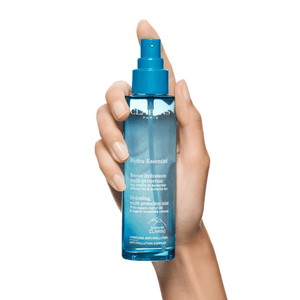 O Clarins Hydra Essentiel Face Mist é uma bruma facial multifuncional que hidrata profundamente, refresca e protege a pele. Formulado com 98% de ingredientes naturais, é enriquecido com ácido hialurônico para atrair e reter a hidratação, e extratos de plantas calmantes para suavizar e refrescar a pele.