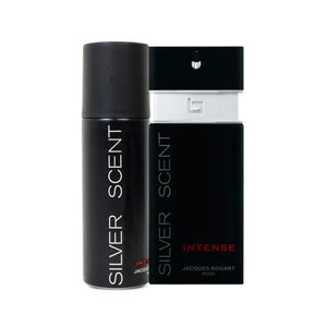 O kit contém: Eau de Toilette Silver Scent Intense (geralmente 100 ml) e desodorante perfumado (geralmente entre 150 ml e 200 ml), reunidos em uma embalagem de coffret que traduz estilo masculino e apelo contemporâneo.