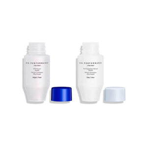 O uso combinado dos dois séruns potencializa a performance do ácido hialurônico com resultados de preenchimento visíveis e duradouros.