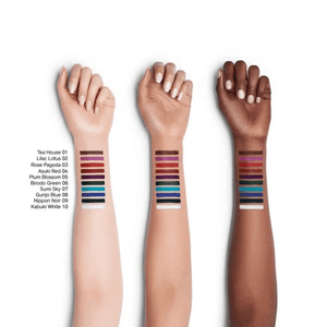 01 TEA HOUSE, 02 LILAC LOTUS, 03 ROSE PAGODA, 04 AZUKI RED, 05 PLUM BLOSSOM, 06 BIRODO GREEN, 07 SUMI SKY, 08 GUNJO BLUE, 09 NIPPON NOIR, 10 KABUKI WHITE |